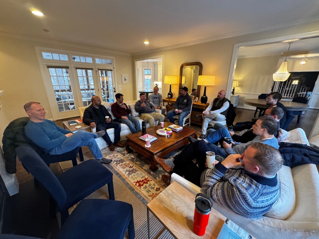 Before the group moved into theology, several dads shared how they practiced last week’s theme: cultivating creativity and building a home environment where kids learn to initiate, persist, and create.